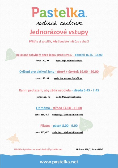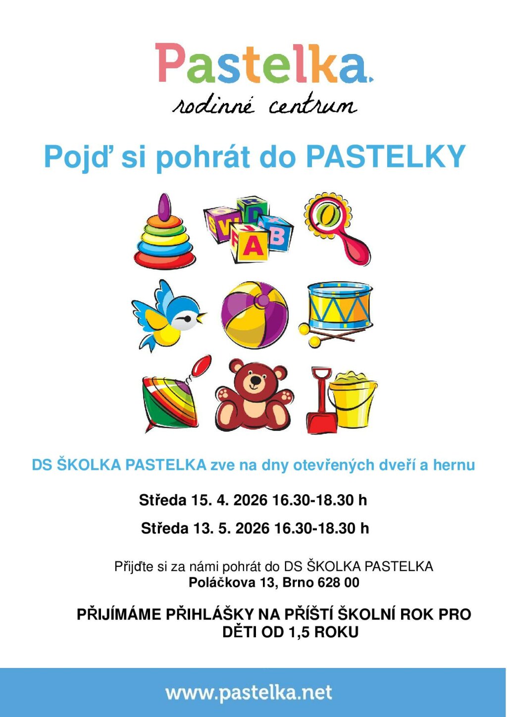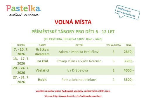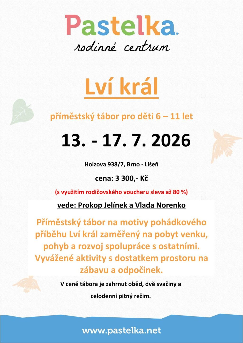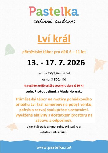 Jsme rodinné centrum v Brně-Líšni. Rozvíjíme talent a zájmy dětí od narození až po druhý stupeň ZŠ. Maminkám a tatínkům poskytujeme prostor pro aktivní odpočinek, práci nebo volný čas pro sebe. Každoročně pořádáme tématické akce pro širokou veřejnost, kde podporujeme mezigenerační soužití a stmelujeme místní rodinnou komunitu.